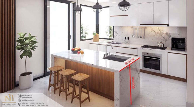Một ví dụ về kích thước đảo bếp mà Nội Thất Napro thiết kế cho khách hàng