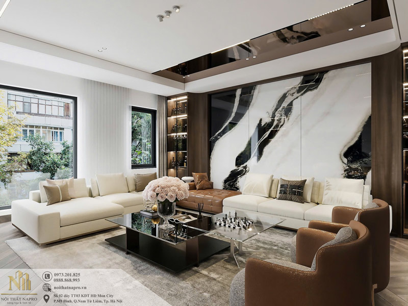 Nếu bạn đang tìm kiếm ý tưởng thiết kế phòng khách sang trọng, tinh tế và đẳng cấp, đây chính là một gợi ý tuyệt vời để áp dụng cho ngôi nhà của mình. Với sự khéo léo trong lựa chọn vật liệu, màu sắc và bố cục, chắc chắn không gian phòng khách của bạn sẽ trở thành niềm tự hào và điểm nhấn ấn tượng trong toàn bộ ngôi nhà.