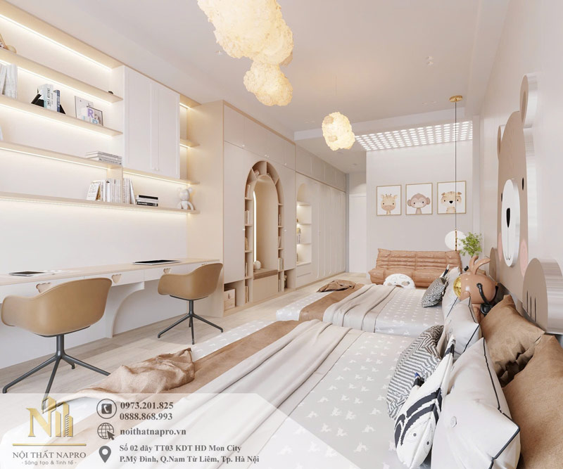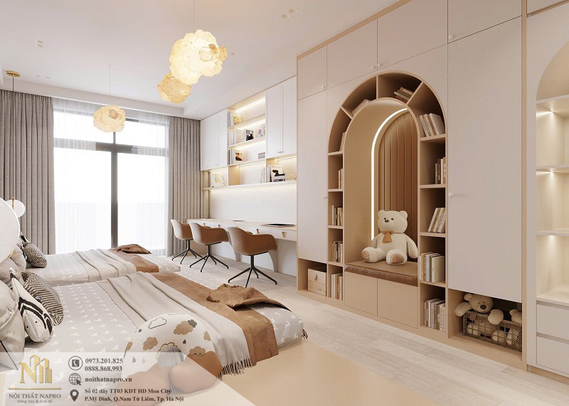 Phòng ngủ không chỉ là nơi nghỉ ngơi, mà còn là không gian học tập, vui chơi và phát triển trí tưởng tượng cho trẻ. Một thiết kế phòng ngủ hợp lý sẽ giúp bé có môi trường sống thoải mái, gọn gàng và đầy cảm hứng. Trong bài viết này, Nội Thất Napro sẽ giới thiệu mẫu phòng ngủ trẻ em hiện đại với phong cách nhẹ nhàng, đáng yêu, kết hợp thông minh giữa thẩm mỹ và công năng.