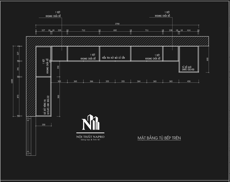 Bản vẽ chi tiết kích thước các khoang cánh tủ bếp trên