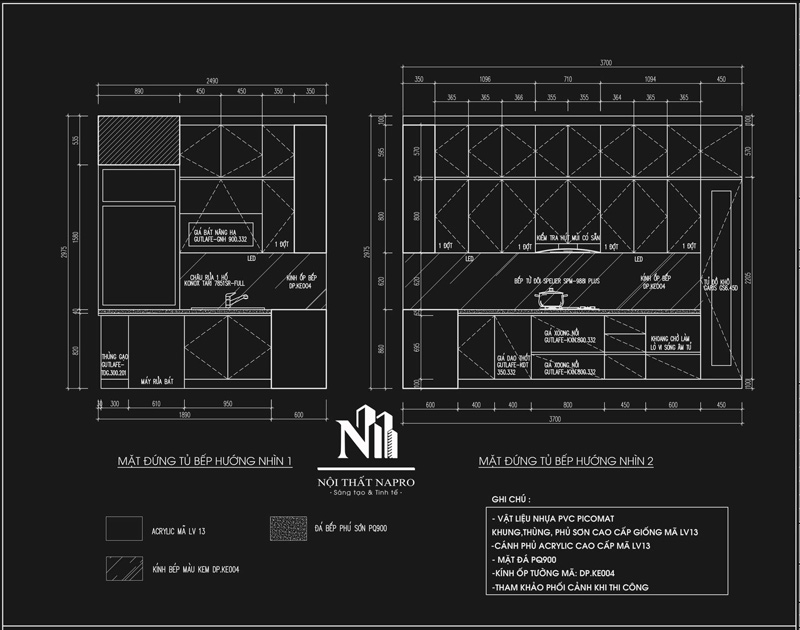 Đây là bản vẽ 2D mặt đứng tủ bếp acrylic NAC34