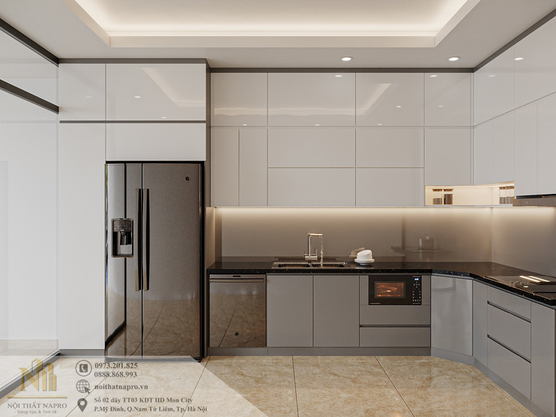 Mẫu tủ bếp Acrylic NAC43 nhà anh Tuấn chữ L hiện đại – Giải pháp hoàn hảo cho không gian bếp tiện nghi và sang trọng