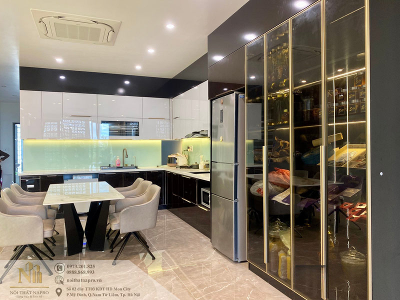 Mẫu tủ bếp cánh kính NCK51 nhà anh Khánh - Hải Phòng kết hợp tủ rượu trang trí đẹp, sang