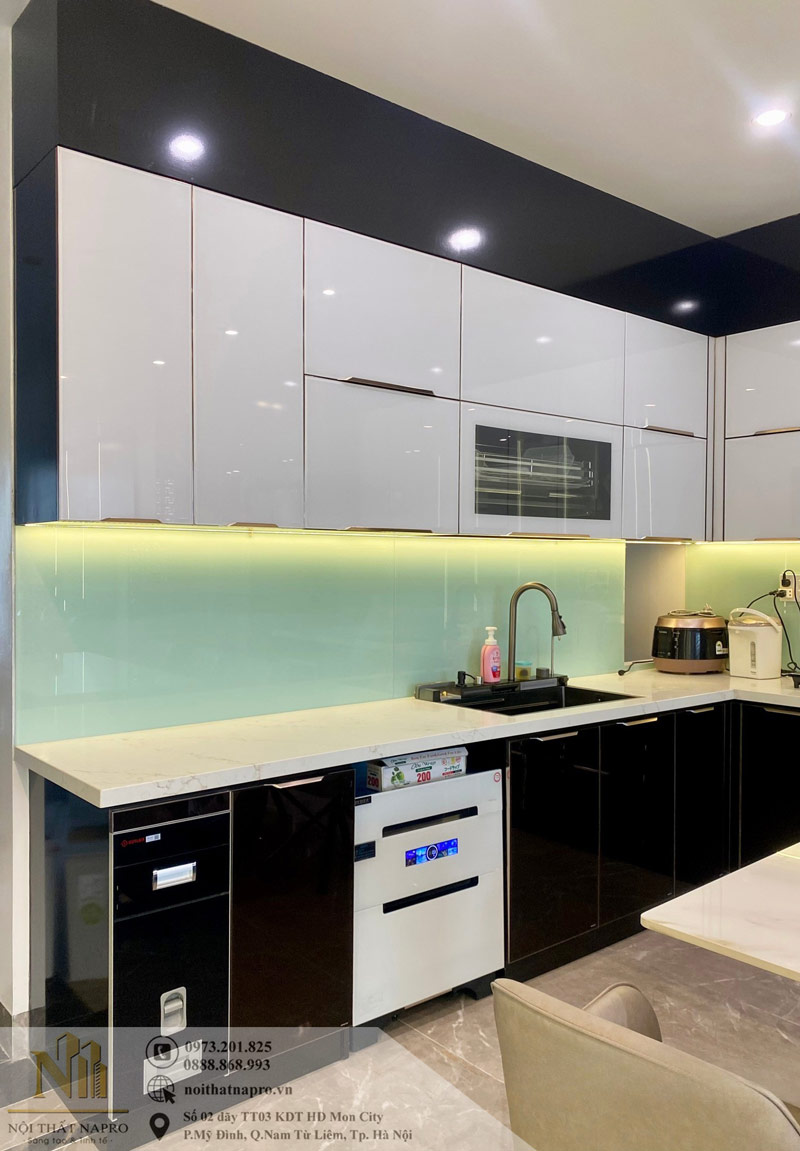 2. Tủ bếp cánh kính NCK51 nhà anh Khánh có thiết kế hiện đại, tiện nghi cao