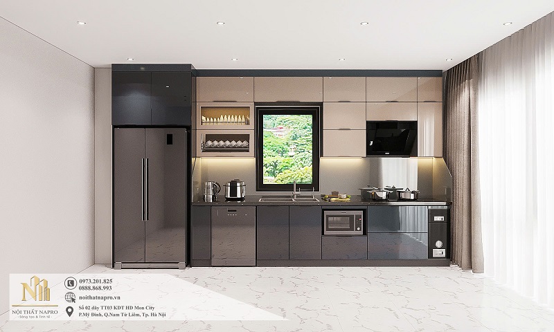 Nội Thất Napro, với vị thế số 1 về tủ bếp tại Việt Nam, đã tiên phong ứng dụng công nghệ CNC hiện đại vào thiết kế tủ bếp inox cánh kính tại Hà Nội, mang đến sản phẩm vừa bền bỉ vừa thẩm mỹ. Các mẫu tủ bếp của Napro không chỉ đáp ứng nhu cầu sử dụng mà còn nâng tầm không gian bếp của bạn.