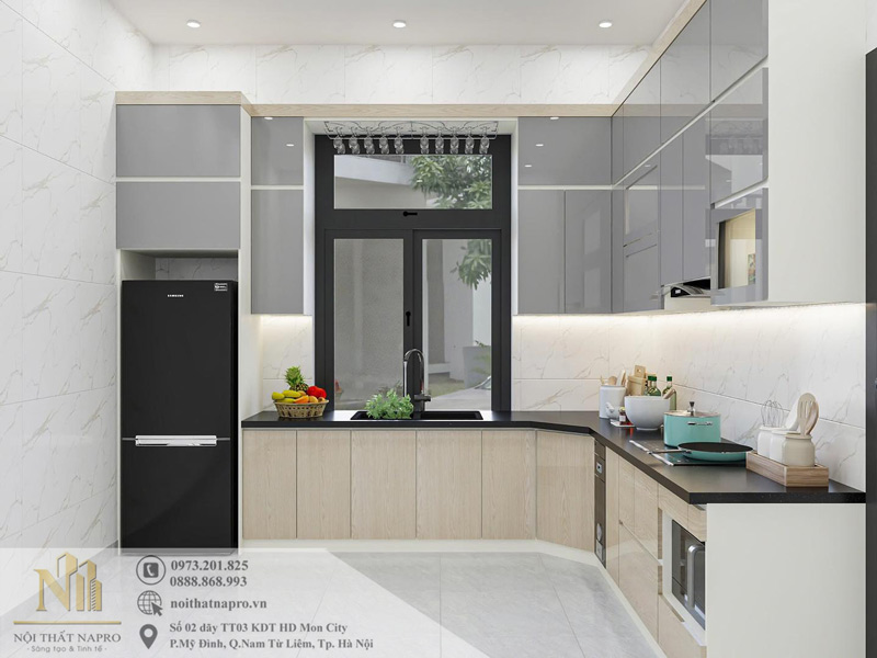 Trong thiết kế nội thất hiện đại, tủ bếp chữ L đang trở thành lựa chọn hàng đầu của nhiều gia đình Việt nhờ khả năng tận dụng không gian góc hiệu quả, mang lại sự tiện nghi và tính thẩm mỹ cao. Mẫu tủ bếp Laminate NLA23 dưới đây do Nội thất Napro thiết kế và thi công là minh chứng rõ nét cho xu hướng này. Với kiểu dáng trẻ trung, vật liệu cao cấp và bố trí khoa học, đây chắc chắn là giải pháp hoàn hảo cho những ai mong muốn sở hữu một căn bếp vừa đẹp, vừa tiện lợi trong sinh hoạt hàng ngày.